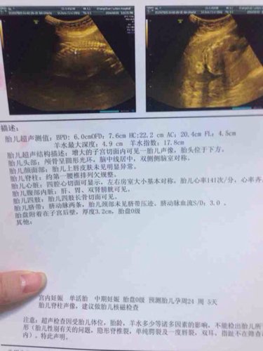 病情分析: 你好,根据你的情况,是做四维彩超的情况,这个彩超看到的有可能是有问题,最好是进一步检查。 指导意见: 建议:目前这个情况,因为彩超也有一定的局限性,目前这个是怀疑有脊柱的问题。