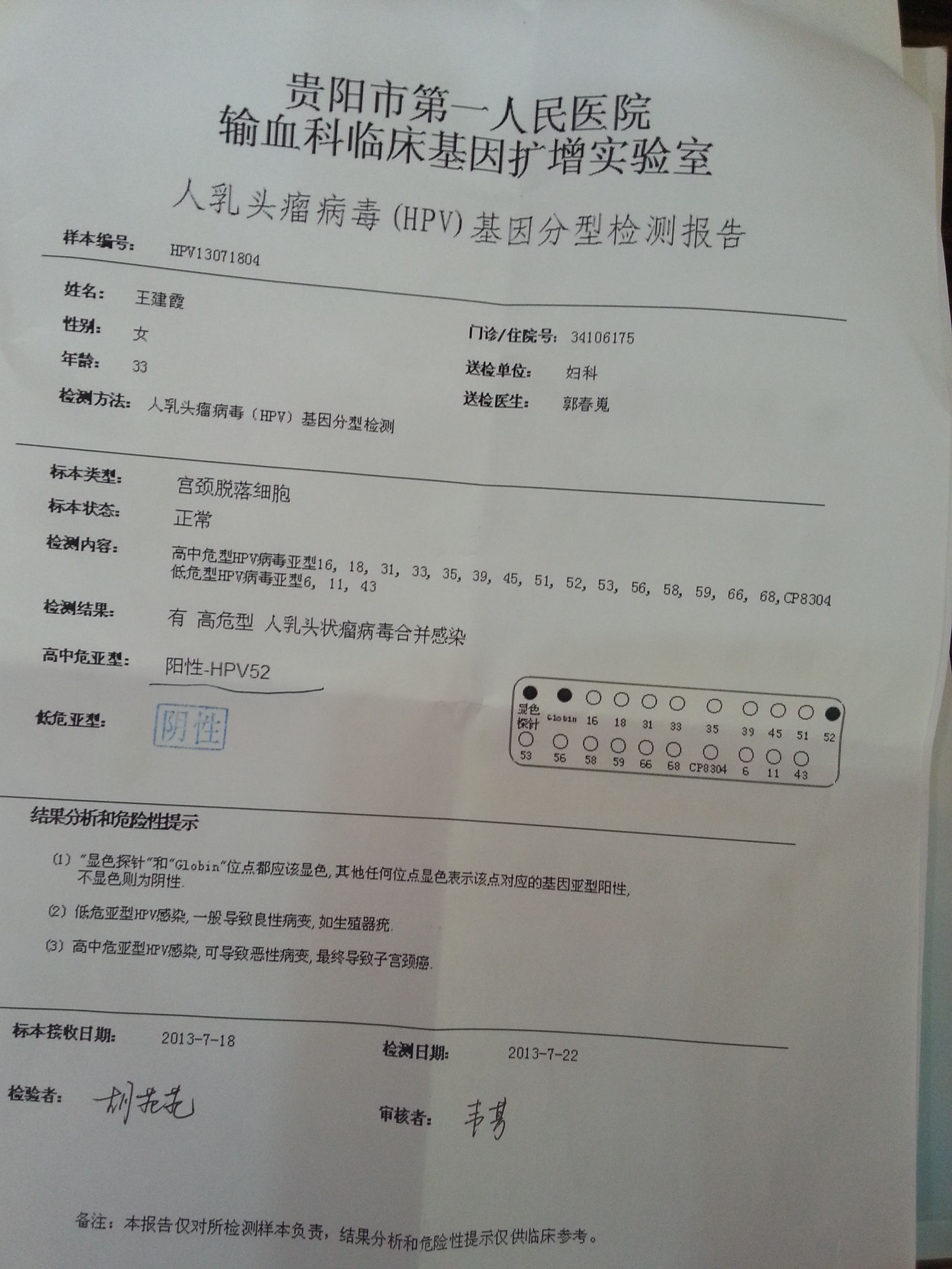 52亚型阳性,年龄33岁,如果性生活史不足15年,可以不担心。定期复查即可。 如果一定要干预并驱除病毒,目前有效方法寥寥。