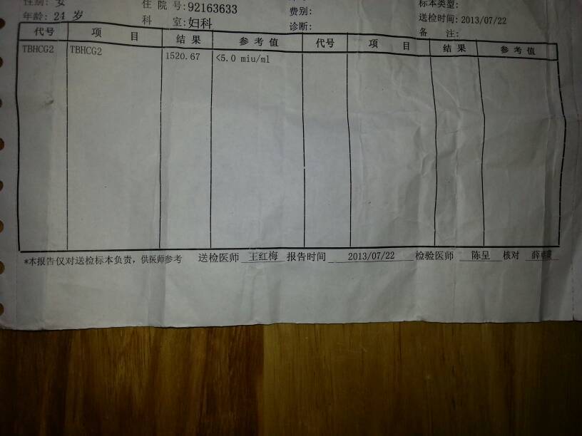 请专业朋友看下下面血液检测报告有没有怀孕,评判标准是什么?谢谢! 点击展开 匿名用户 2013-08-02 08:15 满意回答 怀孕两周到三周了 匿名用户 2013-08-02 08:17 宝宝知道提示您:回答为网友贡献,仅供参考。 相关问题 你好 朋友做了血液hcg检查,但因为时间原因没有看医生检验结果如下β-hCG 30054 00h 怀孕6周左右 请各位懂医的朋友看看这张孕妇血液报告 看看是否属于唐氏高危 孕六周了前天做过血液 尿液 腹部b超 阴道b超…没什么问题,但我男朋友他说我去的那个医院小不靠谱