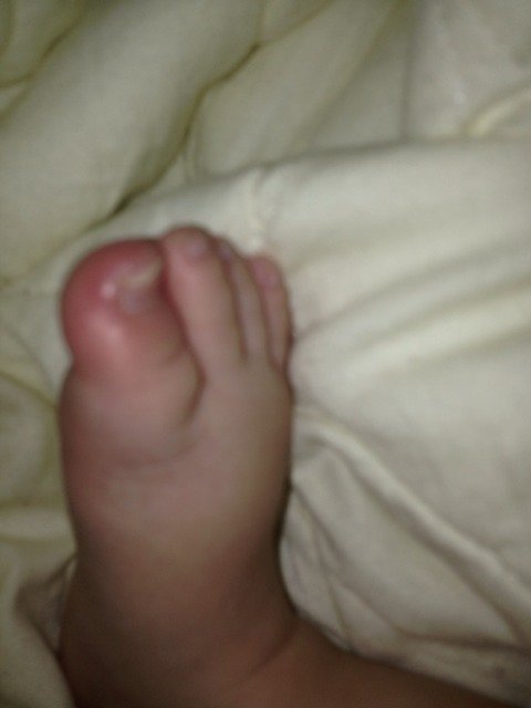 今天发现宝宝脚丫子大拇指指甲内侧发红!碰了她疼呢,就缩了一下,不知道这是不是传说中得甲沟炎呢?求有 今天发现宝宝脚丫子大拇指指甲内侧发红!碰了她疼呢,就缩了一下,不知道这是不是传说中得甲沟炎呢?求有经验得亲们解答… 点击展开 139*****220_qdz7 2015-03-10 21:57 为您推荐: 其他回答 看不太清楚。大指红这多,最好到医院就诊,赶紧。 135*****655_wOjs 2015-03-10 22:39 恩O:-) Je 2015-03-10 21:57 相关问题 我家宝宝得了甲沟炎手指大拇指可能要拔指甲,会不会很疼,要多久才能痊愈 甲沟炎是灰指甲吗 甲沟炎是灰指甲吗