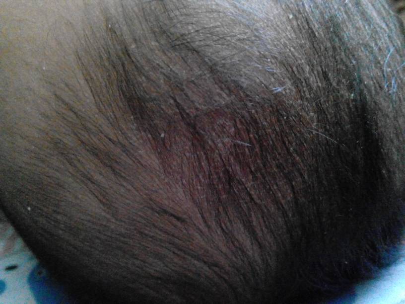 你好,根据你的描述,考虑宝宝这种情况应该属于“胎脂”,随着生长慢慢就会好的,洗澡的时候用婴儿沐浴乳或婴儿油清洗(要轻轻的啊),等头颅骨完全闭合后(长硬了)就没有了。