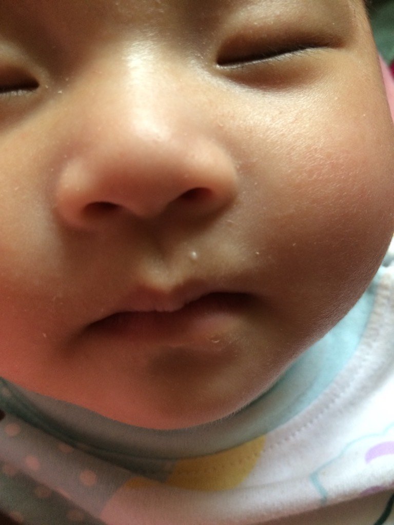 宝贝出生后嘴巴上就有一个小白点,突起,感觉里面有白东西像粉刺似的,现在快4个月了还没下去,宝妈们看