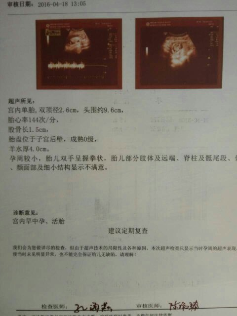 怀孕三个半月,从彩超单子上能看出男女吗? 点击展开 匿名用户 2016-04-18 17:22 为您推荐: 其他回答 问题分析: 你好,超声检查是看胎儿的形态结构有无异常的,并不能够体现出性别的,而且有关外生殖系统的畸形异常也是不包括检查范围 意见建议:建议定期做产科相关检查观察胎儿发育情况。 赵寄蓉_J94G 2016-04-18 19:17 相关问题 彩超单子上可以看出男女吗? 怀孕几个月适合做思维彩超,是五个半月还是六个月 怎么计算自己怀孕多少天那,今天去做彩超单子上说38天,然后问医生,医生说按自己的月经计算,那今天是