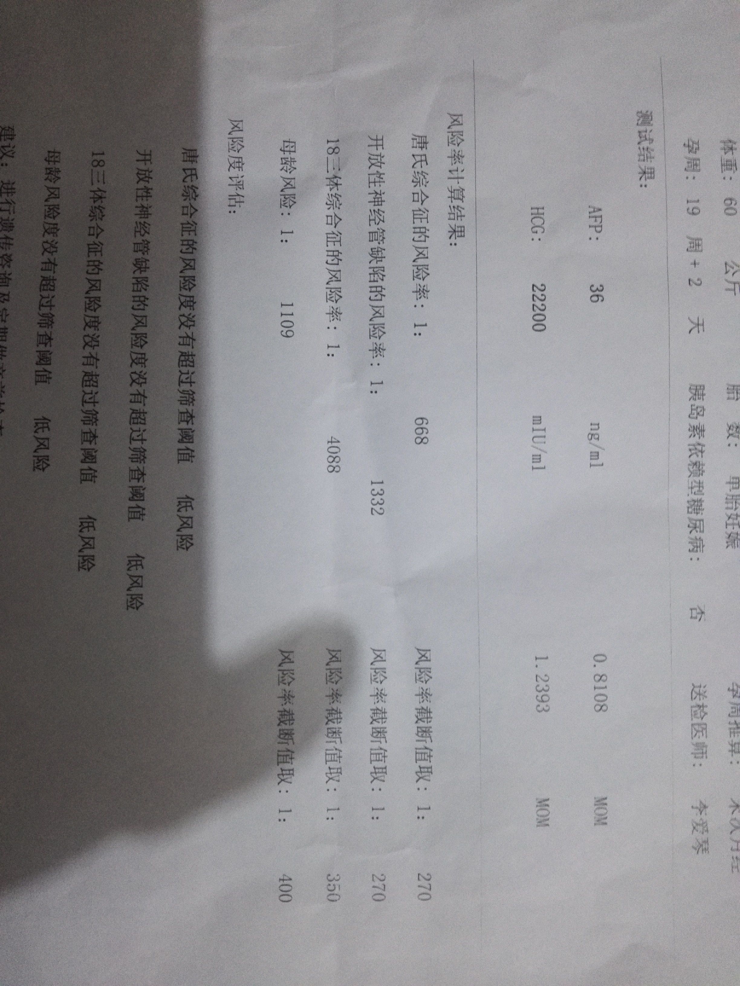 我老婆30岁,怀孕4个月,身高170cm,体重现在128斤 现在做唐氏筛查:唐氏