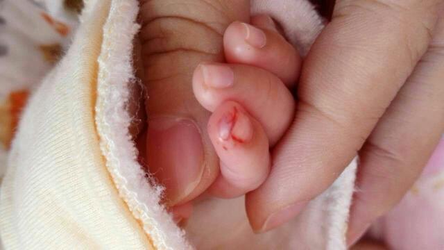 用75%医用酒精消毒,要快,这么小很容易破伤风的。不是很严重,应该没事的,孩子的恢复能力比较强.毕竟宝宝这么小,给宝宝剪指甲的时候,宝妈最好用安全指甲剪.