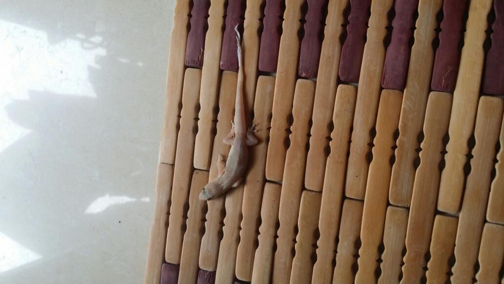 今天家里发现这个,怎么是这个颜色?是新生儿壁虎吗?我走近它也一动不动,两只眼睛睁的大大的,这个有毒