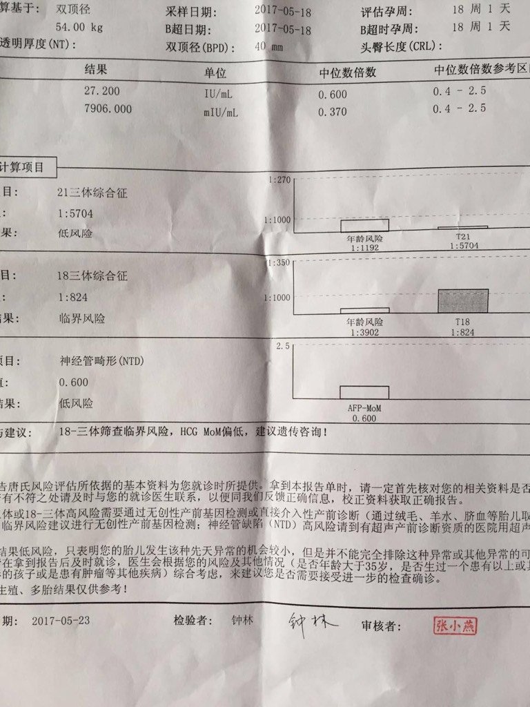 唐筛中期临界风险要做无创吗 帮我看看报告单 唐筛中期临界风险要做无创吗 帮我看看报告单 点击展开 廖小先111 2017-05-31 15:23 为您推荐: 其他回答 根据你提供的唐筛结果提示18三体综合征的风险为临界高风险,唐筛准确率不高,建议做一下无创dna或者羊水穿刺。 cn#BaLLVVfakk 2017-05-31 16:48 正名字!!! 闷心是一种笑 2017-05-31 15:28 相关问题 唐筛临界风险,帮我看看,要不要做无创啊,谢谢啦 中期唐筛临界高风险用做无创吗 各位宝妈们,我中期唐筛结果是临界风险,需要去做无创吗?