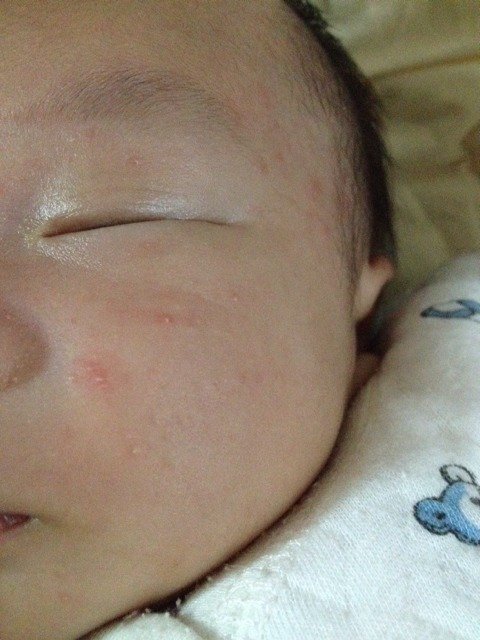 宝宝现在刚满月,脸上很多痘痘,长出来有白头,慢慢的白头就没有了,变成红点了 有人说是毛囊口堵塞 请