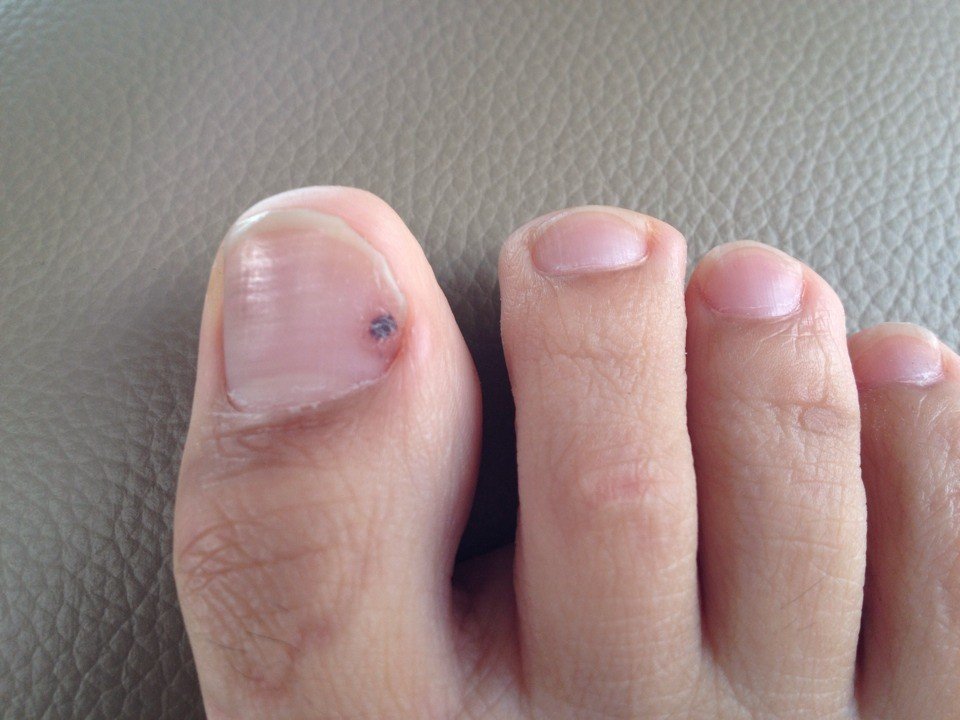 大脚趾指甲上长了一个黑点 我的右边大脚趾指甲上长了一个黑点,有一个多月了,不长大也减小,像痣一样,但是抠不掉,有一次穿的鞋子有点夹脚,不知道是不是挤到了,就瘀血了。想知道是什么情况,请了解的人跟说下,谢谢!! 点击展开 匿名用户 2013-11-25 14:19 为您推荐: 其他回答 你的好了吗 我脚上也有 匿名用户 2016-04-15 16:11 你的指甲好了吗 偶遇到同样的情况 匿名用户 2015-06-02 15:05 美女 你的脚好好看哦 ! 这个没事的 不要担心 匿名用户 2013-11-25 15:24 淤血块,等指甲长出了,剪掉就行了。 匿名用户 2013-11-25 15:01 相关问题 就是脚趾甲长了黑点,是靠最里面长的,两个指甲都有 大脚趾指甲掀起没有流血下面完全是空的,右 婴儿脚趾甲有黑点怎么回事啊?会不会是得了黑指甲啊?怎么去掉啊?
