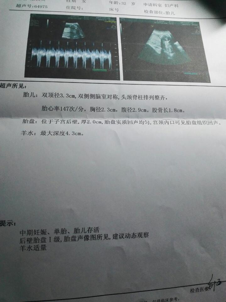 你好,我孕期16周,今天检查医生说有可能前置胎盘,建议观察,请帮我看一下我是不是前置胎盘,有点怕,我一胎是顺产,这个也想顺,不想刨…麻烦你了,帮我看一下,下面是b超单 你好,我孕期16周,今天检查医生说有可能前置胎盘,建议观察,请帮我看一下我是不是前置胎盘,有点怕,我一胎是顺产,这个也想顺,不想刨……麻烦你了,帮我看一下,下面是b超单 点击展开 薰衣草& 2016-01-16 10:07 为您推荐: 其他回答 这个我看不懂 馨儿小宝贝♥ 2016-01-16 15:11 多休息吧。。 玥蓉妈妈 2016-01-16 14:49 听医生的粑 伴于他心。_fqCc 2016-01-16 14:46 听取医生建议到时候 淼淼心肝 2016-01-16 14:34 不清楚,,, 梦里梦见梦不见的_3wL0 2016-01-16 14:26 加载更多 相关问题 今天b超检查,医生说我前置胎盘 有问题么? 在线医生你好想问一问我第一胎是剖腹的,已经有四年了,现在又怀了第二胎,不想剖腹,想顺产,可不可以生 医生你好,我现在38+2天,宫高已经40了,身高167,这宫高是不是太高了?能顺产吗?