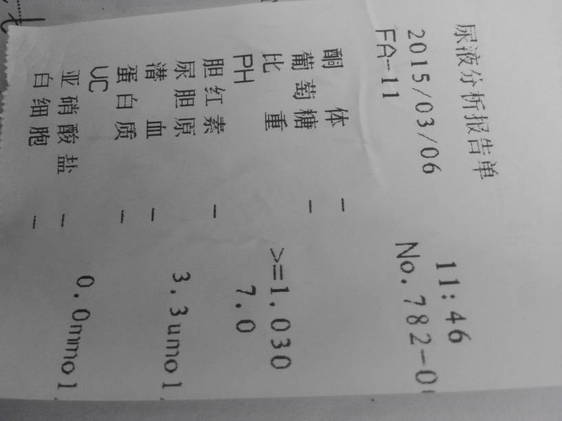 请问这张女性尿液分析报告单,有没有什么问题?查不孕的 点击展开 匿名用户 2015-03-06 12:53 为您推荐: 其他回答 你好:根据你的提问,你现在出示的尿常规结果无异常,这项检查显示的是泌尿系统有无异常情况。 zhangwenbo2001 2015-03-06 13:37 相关问题 大家帮忙看看这张尿液检查报告有问题吗?女性,怀孕检测 今天去产检,尿液分析报告,葡萄糖3十,会不会对宝宝有没影响啊? 今天去检查的不孕,尿液蛋白是2+,这样正常吗?