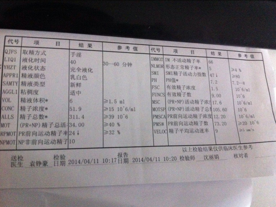 今天刚检测的精子质量,准备吃一个疗程的麒麟丸,活跃度低了,像这样还有怀孕的可能吗 点击展开 匿名用户 2014-04-11 16:02 为您推荐: 其他回答 病情分析: 这种精子是可以怀孕的,只是稍微困难点。 指导意见: 这是精子的活度较低,但是对怀孕影响不会特别大,是可以怀孕的。 匿名用户 2014-04-11 16:12 相关问题 精子质量差医生给开了麒麟丸吃药的同时可以要小孩儿吗? 今天测的是双杠(排卵试纸),什么时间同房会怀上,想要个男孩 另问一下什么情况下精子质量最好,活跃度较高 男方精子质量差,活跃度不行,女方有一边输软管不通能怀孕吗?