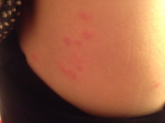 因家里有家禽和狗,怀孕时在外地不痒,一回到老家就抓出了这样的包包,脚上也是这样的,图片是腰上的,这