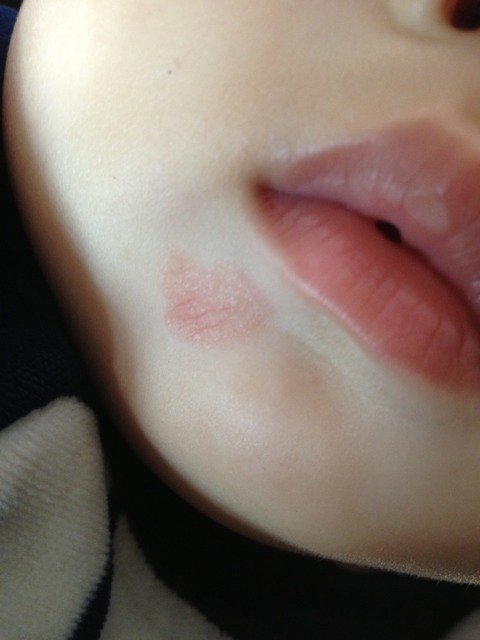 流口水弄的,以前有湿疹,擦了药膏很快就好了,这个都快一个月了,也没好!用的舒极宝宝,不流口水的时候