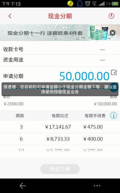 为什么我的信用卡用了有五个月了,还是不可以做现金分期的???? 点击展开 匿名用户 2014-09-29 19:15 为您推荐: 其他回答 去银行问 匿名用户 2014-09-29 19:44 才5个月。时间太短 匿名用户 2014-09-29 19:20 申请账单分期手续费还便宜些 匿名用户 2014-09-29 19:20 向银行申请就可以 匿名用户 2014-09-29 19:16 相关问题 明生信用卡一次用5000现金还五个月要还多少 98年的女孩把公司钱弄丢了,公司要求第二天赔现金,而且钱有点多,请问,可不可以从工资里面扣?同不同 去美国身上带的现金如果超额了,可不可以分给自己的小孩(已满14岁)带着呢?