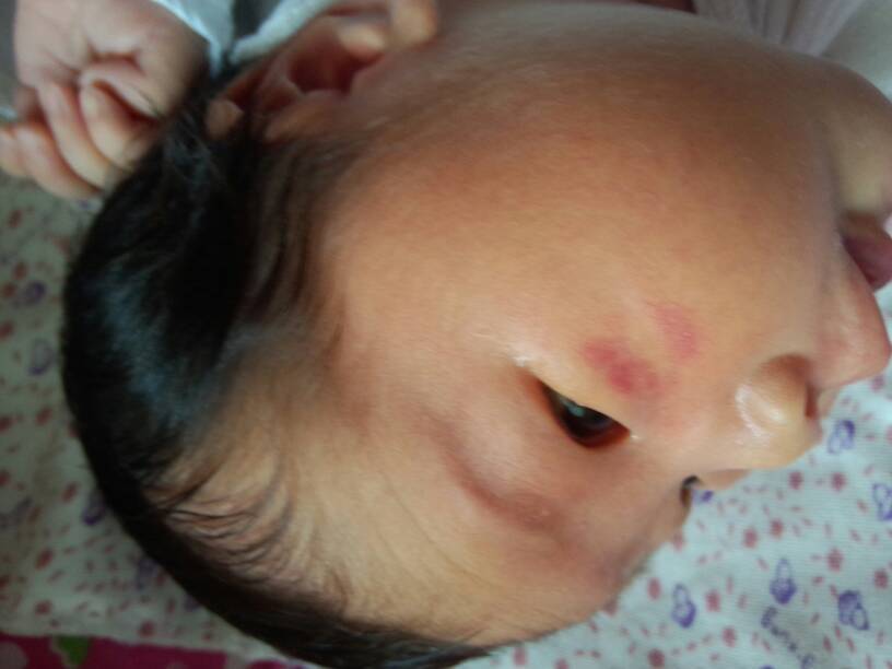 有可能是胎记,也有可以是你怀孕时吃了太多辣了上火了食品,所以宝宝也上火,等宝宝大点看看会不会消失,(你要是喂奶就不能吃上火和辣椒的食品)我宝宝就是我怀孕时吃了辣椒和泡面,出生前一晚还在吃哈哈,结果宝宝两个眼皮额头上都是红了,后来自己慢慢消失了,但我不能吃上火了,不然宝宝那里就又会红红了,