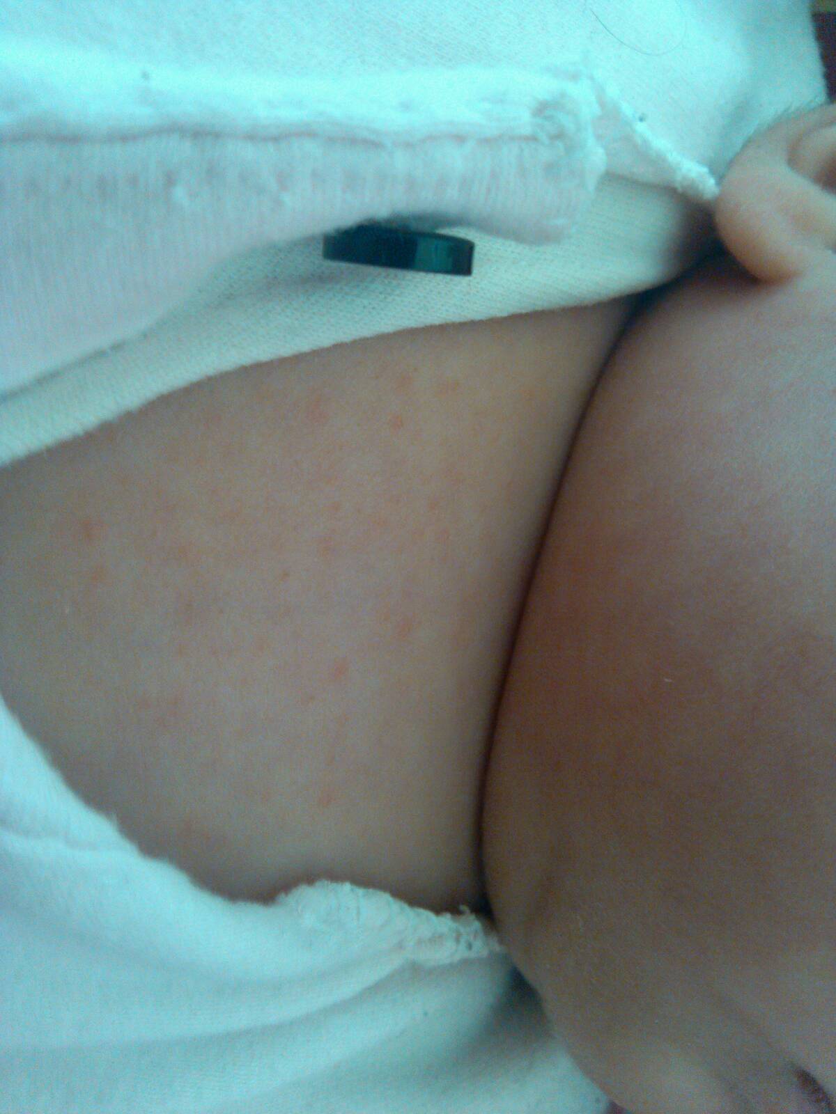 你好,我家40天的宝宝最近这几天胸前有红色小碎疙瘩,我拍了张照片,请医生帮我看看这是痱子还是湿疹啊