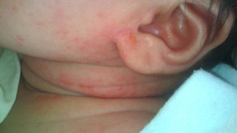 医生帮看下宝宝脖子和耳朵刚开始长得像湿疹一样现在变成这样了是什么了,担心死了
