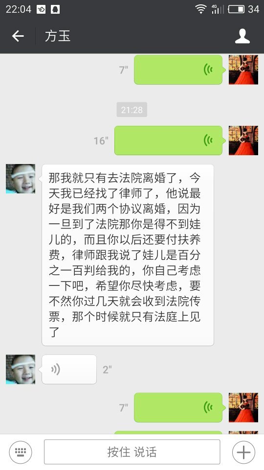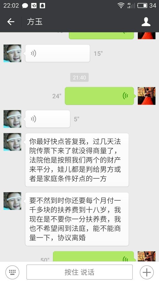 谁能帮个忙请问一下我朋友老公提出离婚孩子该跟谁,还要如果跟男方女方给抚养费不,我哪里有截图看一下 点击展开 匿名用户 2016-05-15 22:18 推荐回答 这个估计给男人的梅逼脂多!就算给男的女方也不用那抚养费的!给女的那个男的得淘抚养费!我感觉那个女的金了带殖炼那个孩子!因为会影响他以后的幸福 沉默别太用心 2016-05-15 23:05 宝宝知道提示您:回答为网友贡献,仅供参考。 为您推荐: 其他回答 协议离婚要好些 匿名用户 2016-05-15 23:19 离婚率高了 xcl833 2016-05-15 22:42 。。。。 匿名用户 2016-05-15 22:35 还是得协商 匿名用户 2016-05-15 22:23 加载更多 相关问题 我朋友去年十一结婚的,到现在她老公打过她六次了,怀孕期间也打她,现在她老公和她提出离婚,却不起诉 我跟老公感情破解提出离婚已经三年多,他一直拖着不离,我现在已经怀了男朋友的小孩六个月,现在不能让他 我朋友生了孩子办喜事,到时候亲戚很多人来给孩子喜事的钱,等了晚上,她婆婆借钱,所以我朋友老公同意了