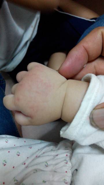 宝宝今天发现两只手背一片红红的,看起来还有一点小肿,刚开始只有虎口一小块红,到中午看到红的位置变大 宝宝今天发现两只手背一片红红的,看起来还有一点小肿,刚开始只有虎口一小块红,到中午看到红的位置变大了,后来有涂了茶仔油好像比较没那么红了不知是怎么啦 点击展开 杉合木业 2014-09-15 19:37 相关问题 手背虎口附近位置一用力就痛 宝宝8个月打了麻风疫苗后两个手背上都起了肿包红红的不痛不痒是怎么回事 手背上无缘无故肿起来,就一个位置圆圆的鼓鼓的