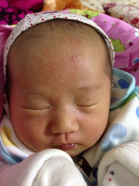 宝宝只有15天,穿多了两天额头就起了这么多痘痘,怎么样才能消除这些痘痘