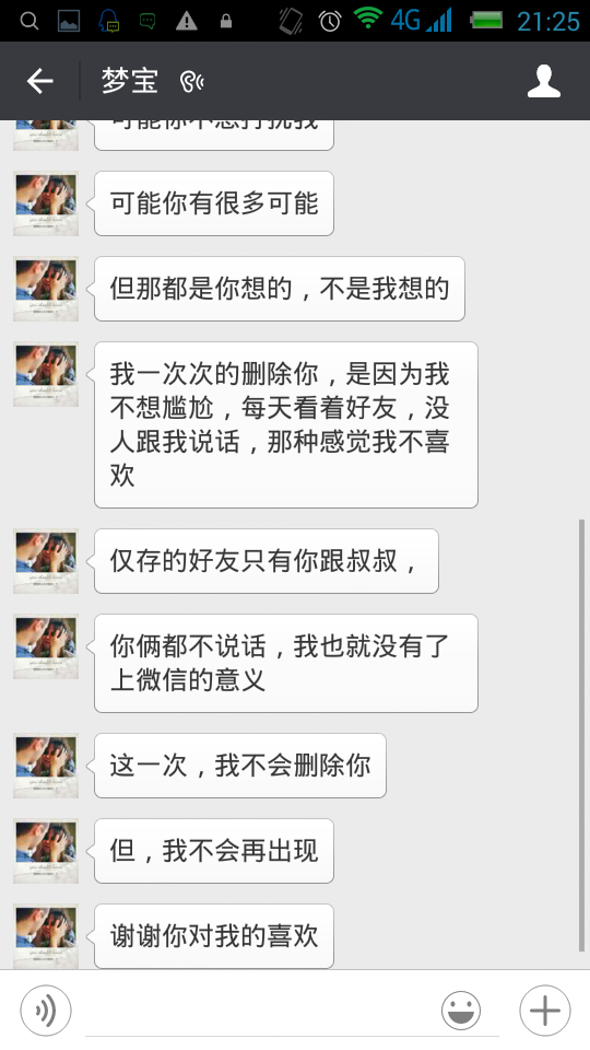 说明心里是喜欢你的,只是女孩子一般比较内向,不想表现出来!只等你主动,从她的留言里可以看出暖殊,你平时在微信里涉饥崭不怎么找她聊天,至少她想让你找她聊天的时候你没有出现!殊吉最后一句她不删除你说明你还有希望!个人意见喜欢就要继续追,只是个人意见,对与不对请谅解……
