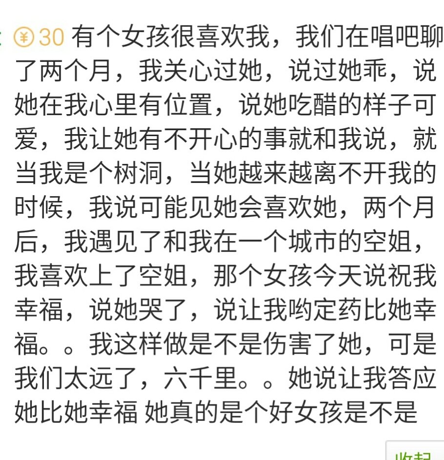 我是不是错过了好女孩 点击展开 匿名用户 2016-03-11 10:39 推荐回答 既然不现实不选择们亲露她也是对的,面都没见源遮过,谈不到伤害那么严重,只是让她失狗安望了,心里不舒服,她能祝福你挺好。 匿名用户 2016-03-11 10:42 宝宝知道提示您:回答为网友贡献,仅供参考。 为您推荐: 其他回答 爱情呢,讲究眼缘,不谈错过,即使你们成了,难道要跨越6千里吗? 匿名用户 2016-03-11 10:44 是!难道真爱无距离!你就敢保证,你最终能跟空姐走到一起吗! 午夜修罗0823 2016-03-11 10:43 是的 匿名用户 2016-03-11 10:42 见了面不一定了 匿名用户 2016-03-11 10:41 加载更多 相关问题 错过了一个好女孩怎么办 漂亮的好女孩多吗 如何教育好女孩