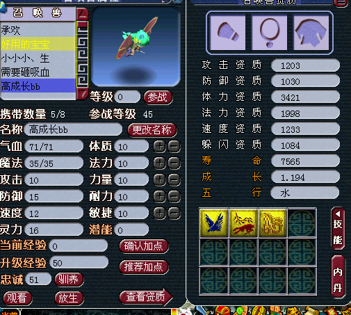 梦幻西游,100::1500的区啦,这个宝宝能卖多少啊! 点击展开 匿名用户 2013-06-15 13:24 满意回答 这个不值钱了。。成长低。技能少。而且还被和成宝宝了。 匿名用户 2013-06-15 13:36 宝宝知道提示您:回答为网友贡献,仅供参考。 为您推荐: 其他回答 3W 这种东西你也放上来啊 知道有多垃圾嘛 买这都浪费位置 匿名用户 2013-06-15 14:16 10-20万,最多 匿名用户 2013-06-15 13:59 相关问题 梦幻西游,这个宝宝怎么处理啊?能卖多少呢?100:1500 谢谢! 梦幻西游70人造笑里再生男头 +44防+86魔法多少钱老红区100=910W 梦幻西游170龙宫三修21 25 22宝宝修15 10 10 10灵1500多转哪个区比较好赚钱