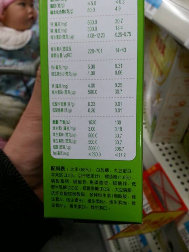 超市的婴儿配方米粉,配方表里的大头是大米,通常70%左右,还有其他成份 但所有成份加起来才百分之八