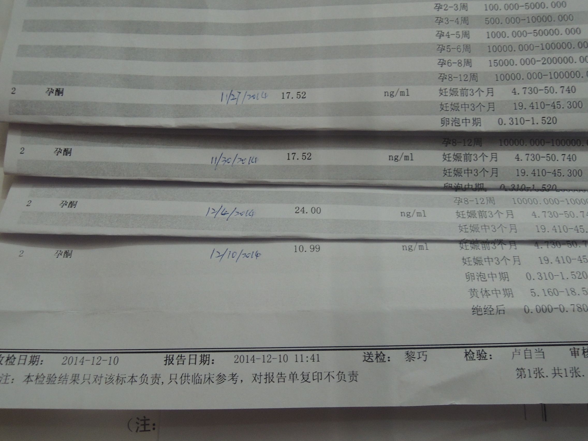 你好医生:我妻子怀孕四十天已做4次血检孕酮从低到正常都有,分别是17.52 17.58 24.00 现在是10.99 医院开了保胎药等,10.99是停药两天的检查结果,请问有什么方法提高孕酮吗?这个10.99 危险性很大吗?现在医生又开了几天的药地屈孕酮片针药也改来每天打两针了!她个人要注意些什么呢? 点击展开 匿名用户 2014-12-10 22:22 为您推荐: 其他回答 你好,孕酮偏低,需要及时补充黄体酮。低的话会引起先兆流产,平时多休息,增加营养,避免劳累和受凉。及时保胎治疗。 ke1008 2014-12-10 23:39 相关问题 医生你好!我怀孕十一周,四十天去做检查正常,五十又去做也正常,九周去做B超孕酮也正常,你说现在乳房 你好,我是2月9日最后一次来月经的,昨天验孕棒是弱阳性,今天去医院做B超没有查到,验血孕酮是100 你好,请问晚上十点三十分左右同房后吃了左炔诺孕酮肠溶胶囊,第二天早上八点三十分再次发生了关系,这时