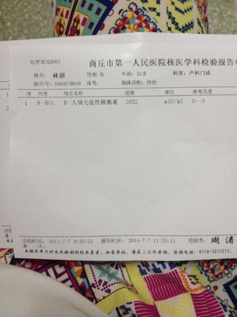 刚出的验血化验单,帮忙看看什么情况?为什么没有孕酮? 刚出的验血化验单,帮忙看看什么情况?为什么没有孕酮? 点击展开 十年_MXtS 2014-07-07 13:15 为您推荐: 其他回答 因为你没检查孕酮啊 紫罗兰爱笑 2014-07-07 13:17 您检查的结果看属于怀孕的现象,孕酮是否正常需要化验看看,如果检查了孕酮建议上传看看是否正常。 爱狂风一样舞蹈 2014-07-07 13:16 相关问题 刚出的验血化验单 帮忙看看什么情况 帮忙看看宝宝的化验单(验血)一直反复发烧,怎么办 我老婆12月15来的月经,到1月29号我去验血,孕酮是6 31,这么低是什么情况,告诉一下谢谢