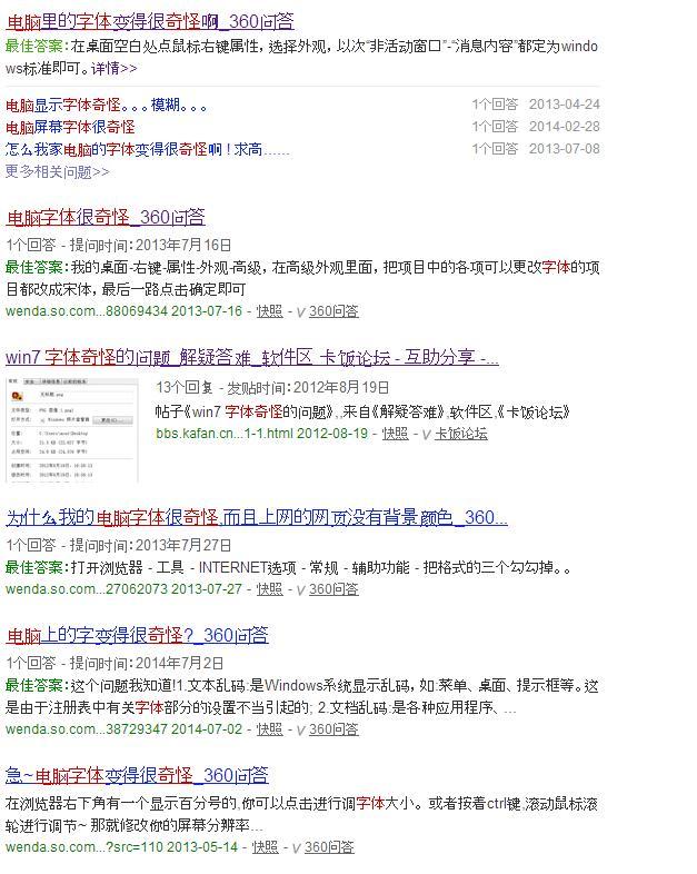 电脑字体变得好奇怪,怎么办? 就都变这样的,排版上下错乱,好烦恼,求解决啊。 点击展开 匿名用户 2014-12-07 20:48 满意回答 重装下浏览器试试 匿名用户 2014-12-07 22:46 宝宝知道提示您:回答为网友贡献,仅供参考。 相关问题 字体变得好奇怪 求帮助 win7电脑界面变得好奇怪 电脑上设计幼儿园名字,有什么字体比较适合?