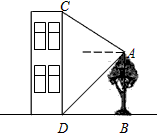 五月石榴红,枝头鸟儿歌,一只小鸟从石榴树上的A处沿直线飞到对面一房屋的顶部C处,从A处看房屋顶部C处的