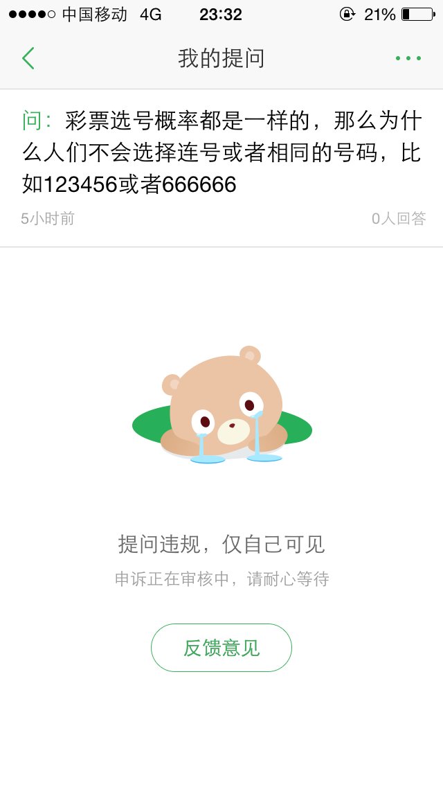 帮我看看这个问题,非常感谢,我很好奇 点击展开 匿名用户 2015-02-27 23:48 为您推荐: 其他回答 浙江体彩6+1有一期开奖结果为777767+7,结果当时还有4注号码中特等奖,说明任何号码都有人买。 匿名用户 2015-02-28 02:05 数字问题,糸统认为是电话号码 131*****129_URwI 2015-02-28 00:07 相关问题 非常感谢各位亲的帮助,帮我看看啦 今天医生说的话吓到我了,情况不是很好,有知道的宝妈吗?能帮我看看吗,非常感谢! 会看手纹的宝妈帮我看看呢,非常感谢!