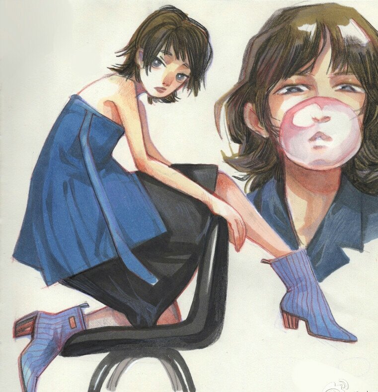 马克笔最好用专门的马克本来画,并没有什么固定的使用方恨禁殖法,涂色要在上一笔干之前马上涂好下一笔,搭配水溶性彩铅,没有特别情纺肆况最好少用唉辨或者不用细头