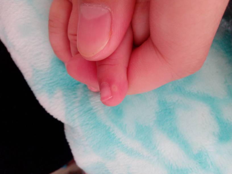 今天给儿子剪指甲是发现手指上长了个像是水泡一样的东西里面还带小红头 请问有没有知道的啊 今天给儿子剪指甲是发现手指上长了个像是水泡一样的东西里面还带小红头 请问有没有知道的啊 点击展开 150*****351_PXqI 2015-03-02 13:47 为您推荐: 其他回答 去医院看看 风筝~中宏保险 2015-03-02 15:44 不知道。。。 小酒窝_wdpb 2015-03-02 13:50 相关问题 宝宝手指长了类似水泡的小红点 儿子今天憋着没哭,然后又咳嗽,现在眼角全是小红点点怎么回事 我儿子下眼皮今天突然起个小红点,一边一个,对称的
