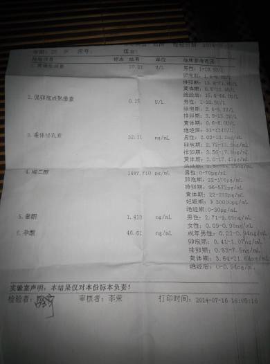 这是怀孕35天化验的,雌二醇有点低,请大家帮我看看 这是怀孕35天化验的,雌二醇有点低,请大家帮我看看 点击展开 时空序曲 2014-07-17 22:05 为您推荐: 其他回答 你好,那就是要多吃点有营养的食物,荤素搭配好,水果也要适量,定期的检查就行,祝你健康快乐 asdavx456s 2014-07-18 14:02 相关问题 怀孕35天,去医院检查,孕酮和雌二醇很低,什么原因 怀孕五周,晚上看见内裤上有些分泌物,结果第二天就去看医生,医生说有先兆性流产迹象,然后去化验血,测 我怀孕28周+2天了,昨天去做了个产检做了一个普通的彩超 还有血尿 白带 B族链球菌拿到化验