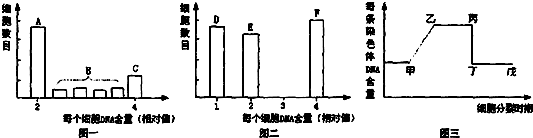 (1)图1中的B组细胞处于S期,对应于图3中的甲~乙段,此时细胞中主要进行DNA的复制和叨敲有关蛋白质的合成. (2)C组细胞所含DNA数目是体细胞的2倍,应包括处于G2期、前期、中期和后期的细胞,其中有寸狗丝分裂后期的细胞每条染色体上只有1个DNA分子,因此C组细胞不都位于图三的乙丙段. (3)精细胞的DNA含量只有体细胞的一半,因此图中D组细胞所示的细胞是精细胞;E组包括精原细胞和处于减数第二次分裂前期、中期和后期的细胞,称为精原细胞或次级精母细胞;F组应包括处于G2期、减数第一次分裂的细胞,此时每条染色体含有2个DNA分子,位于图三中的乙丙段. (4)睾丸中精原细胞数量多,所产生的初级精母细胞、次级精母细胞和精子等各种细胞数量大,得出的统计数据比卵巢的准确,因此要获得图二所示的结果,用睾丸作为研究对象比卵巢所得结果更可靠.故答案为:(1)甲乙;; 完成DNA的复制和有关蛋白质的合愚做香成;;(2)否;; 有丝分裂后期的细胞每条染色体上只有1个DNA分子;;(3)D; 精原细胞和次级精母细胞;;; 乙丙;;(4)睾丸中精原细胞数量多,所产生的初级精母细胞、次级精母细胞和精子等各种细胞数量大,得出的统计数据比卵巢的准确