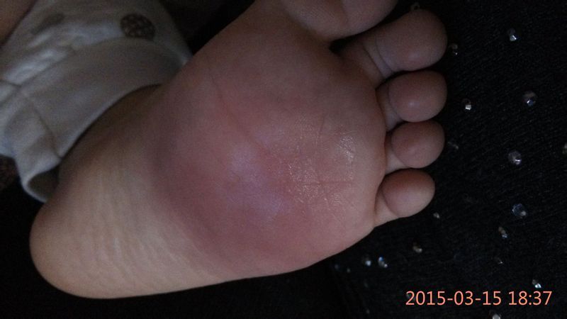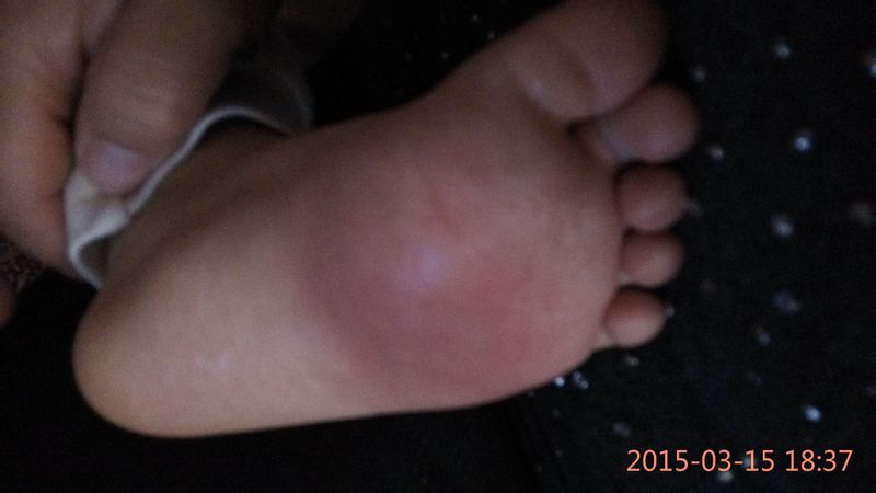 你好,你宝宝的这种情况可能是属于局部的化脓性的感染,可以外用红霉素药膏,同时,口服消炎的药物治疗。效果会更好一点。同时注意清淡饮食。脚不要剧烈的活动。不然会容易引起感染的扩散。 如果是肿胀的部位发展到脚踝就要及时的就诊,需要注射消炎的药物治疗的。