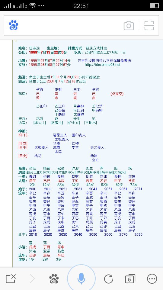 算卦 看八字,算命,预测,求看看八字,看看孩子命运 点击展开 匿名用户 2015-11-27 16:54 推荐回答 正是一生中不做过好悠寸泳的降射运,没有办法!伤官财造成忌神旺,破财伤伤必然,这命要到32后好了, 仝元芹_VrOO 2015-11-28 08:22 宝宝知道提示您:回答为网友贡献,仅供参考。 为您推荐: 其他回答 只看八字, 匿名用户 2015-11-27 16:58 相关问题 八字算命准吗 双胞胎一样八字为啥命运不一样 1952 07 26出生男,属马,算卦街算命师能帮测算下寿命吗 提问2014年闰九月初九10点25分男孩算命请算卦街各位大师帮忙,分析下孩子需要的注意事项,谢谢!