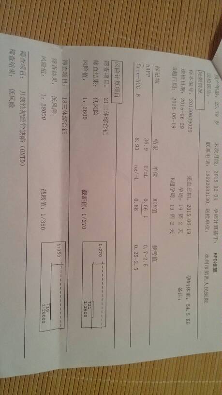 唐氏筛查结果 HAFP MOM值:0.66 参考值:0.7~2.5 宝宝问题大不大