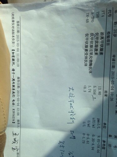 问: 怀孕17周!甲功检查,促甲状腺激素5.57!需要吃药吗?其他正常!跪谢! 问: 怀孕17周!甲功检查,促甲状腺激素5.57!需要吃药吗?其他正常!跪谢! 点击展开 151*****018_dS8O 2015-03-06 10:55 为您推荐: 其他回答 找内分泌医生,还是慎重点好。 匿名用户 2015-03-06 19:09 不需要 匿名用户 2015-03-06 10:55 相关问题 问: 30 怀孕17周!甲功检查,促甲状腺激素这一项数值5 57!需要吃药吗?跪谢! 怀孕快六周了 hcg53717,孕酮17 76正常吗? 我怀孕5周+3天,今天验血孕酮18 17 ng/ml 请问是否过低?是否要吃药?