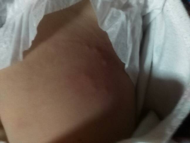各位亲们,谁懂的?帮忙看一下,刚才换衣服的时候发现宝宝大腿附近出现了几处小红疙瘩,附图如下?有人知