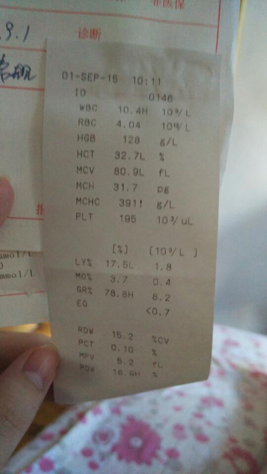 现在是34周加6天,抽的血常规,医生帮忙看看有异常么? 现在是34周加6天,抽的血常规,医生帮忙看看有异常么? 点击展开 黄小轩 2015-09-01 13:46 为您推荐: 其他回答 问医生了吗 不知道叫什么 2015-09-02 15:04 妈呀!😁这个只有医生能懂 悠麻 2015-09-02 09:33 没中文好奇怪 房牡丹~ 2015-09-01 21:58 正常得。。。 瑞婕 2015-09-01 19:35 不懂,问问产检医生 紫霏招刷单员打字员 2015-09-01 17:04 加载更多 相关问题 请问医生这个是我昨天刚查的血常规,帮忙看看贫血吗? 有谁会看血常规,帮忙看看,医生说病毒感冒,还有缺铁性盆血,严重吗 有没有医生可以为我解答的 你好,我8月2号检查的 那时候医生说是七周加5天 到了现在8月11号 宝