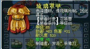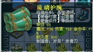 护腕50W的样子 衣服最少500W以上 我们区65的装备特值钱 比例是 100:1100