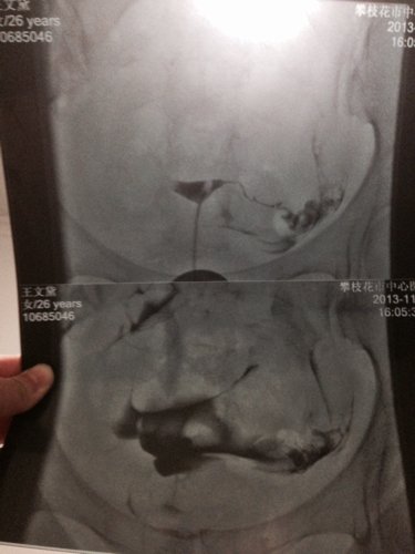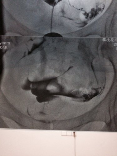 病情分析: 你好,从你的左右骗子来看,左侧输卵管应该是通畅的;而右侧输卵管在子宫角处,也就是与子宫相交接的部位都没有显影,考虑是输卵管的间质部梗阻不通。子宫腔形态呈倒三角形,正常。 指导意见: 建议:可以做B超监测卵泡的发育和排卵情况,如果是左侧卵巢有优势卵泡并排卵的话,那就应该在排卵日前后安排同房...