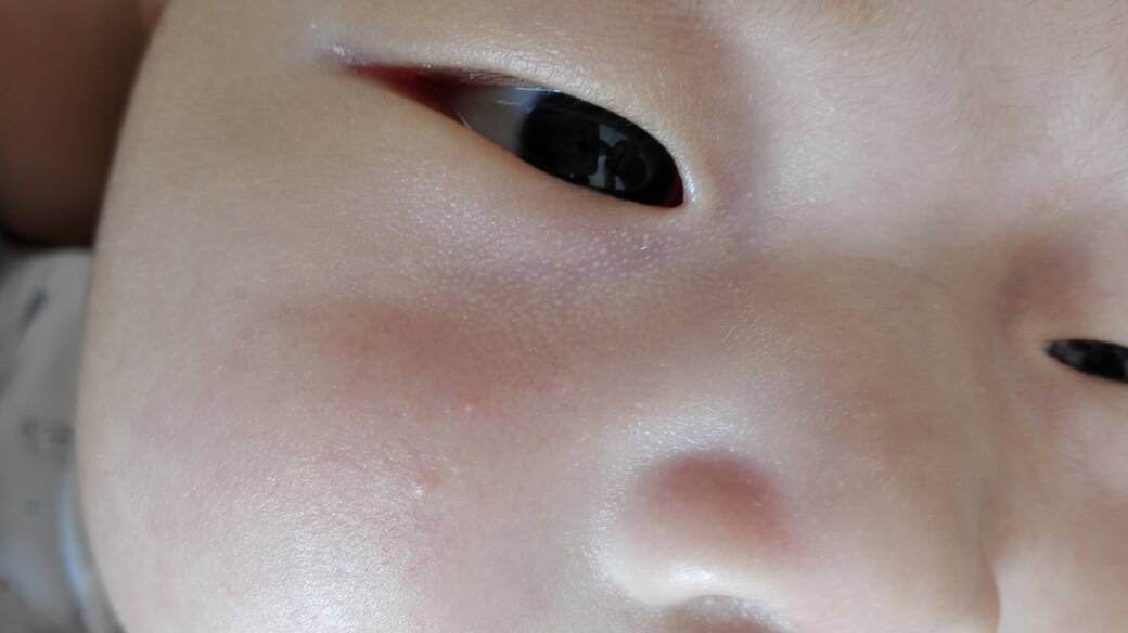 大家帮忙看看我宝宝眼睛下面成片的白色小点儿是什么?皮肤平平的不是突起的疙瘩