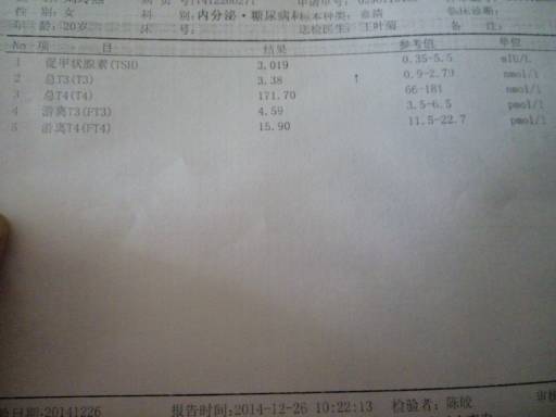 有哪位医生在吗?帮忙给看哈 有哪位医生在吗?帮忙给看哈, 点击展开 爱的心好痛 2014-12-26 13:18 为您推荐: 其他回答 你好,从你体供的化验结果上看,问题应 该不大,建议不要担心。 羽化翩跹lc 2014-12-26 21:37 正常,,,,, 开心公主 2014-12-26 14:04 没多大影响,我当时T3、T4都偏高,孩子没事,自己平常多注意就是 小畅畅520 2014-12-26 13:49 T3高了,多吃海鲜之类的东西 小畅畅520 2014-12-26 13:45 嗯,,,, 你给我的爱只是一种谎言 2014-12-26 13:29 加载更多 相关问题 这哈还有医生在吗? 请各位医生帮忙解释哈,谢谢 这是ct医生帮忙看哈