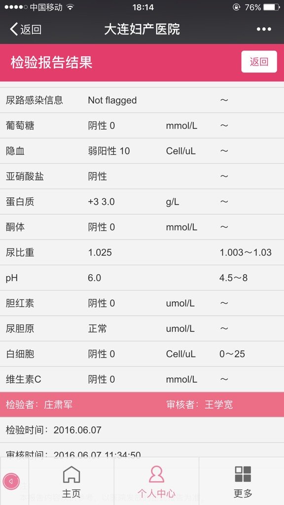 孕35+3周尿检结果 麻烦懂得帮忙看一下哈 孕35+3周尿检结果 麻烦懂得帮忙看一下哈 点击展开 我叫于小于 2016-06-08 18:28 为您推荐: 其他回答 祝宝宝健康 放肆的笑是涐的驕傲丶 2016-06-08 19:02 不会aa a 小蒙恩妈妈 2016-06-08 18:55 祝宝宝健康成长,赏点金币,谢谢。 大瓶盖子 2016-06-08 18:46 …………………… 小小宝贝哦 2016-06-08 18:41 问问医生吧 玛帕公主 2016-06-08 18:39 加载更多 相关问题 我做尿检是阳性,做阴道B超和彩超都没发现问题,血HCG检测第一次是67 8,第二次是16 7 请问还是宫外孕吗 尿检能测出是宫外孕吗?在线等,谢谢