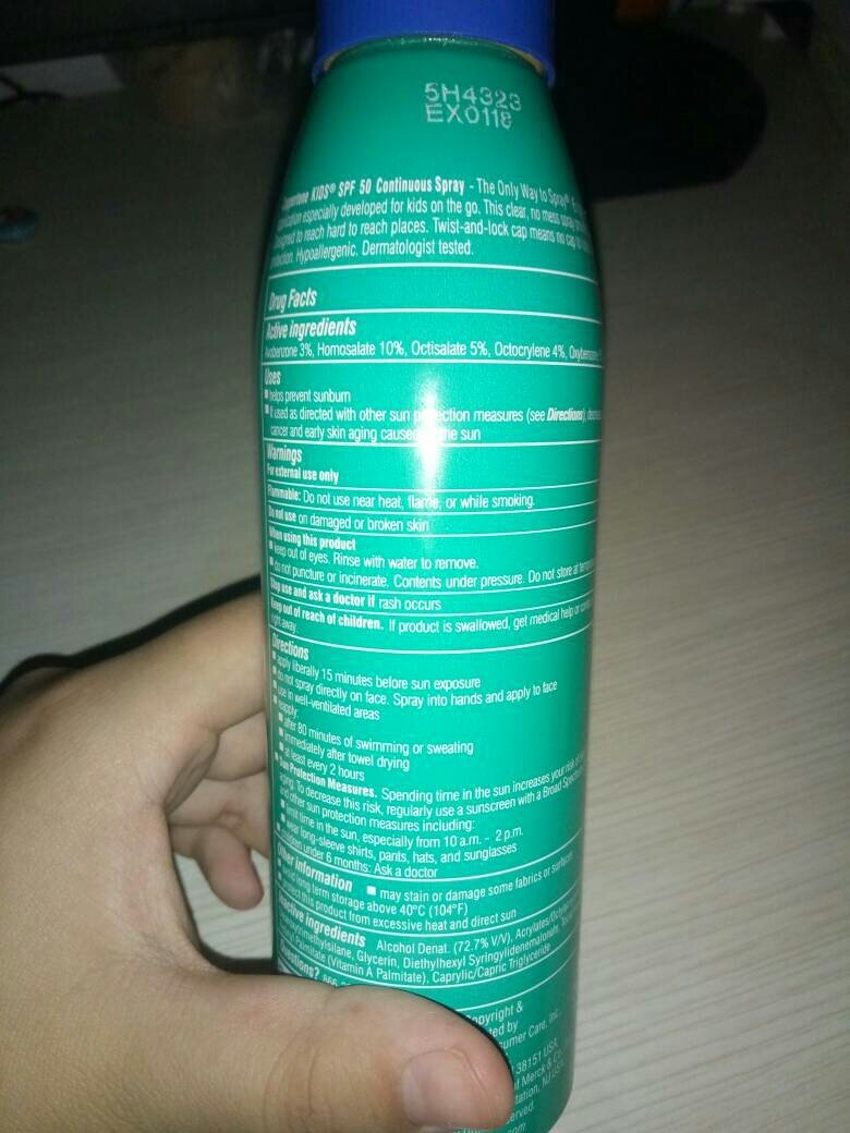 今天买了一瓶水宝宝SPF50的喷雾,一喷有很刺激的酒精味道,过几秒钟又消失了,味道还不错,很困扰